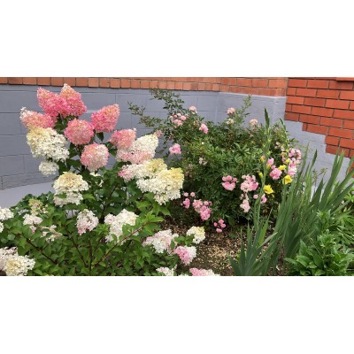 Цветки гортензии меняют цвет от сливочно-белого и нежно-розового до почти малинового к концу периода цветения. При этом верхушки соцветий остаются белоснежными, создавая потрясающее разнообразие оттенков на одном кусте.